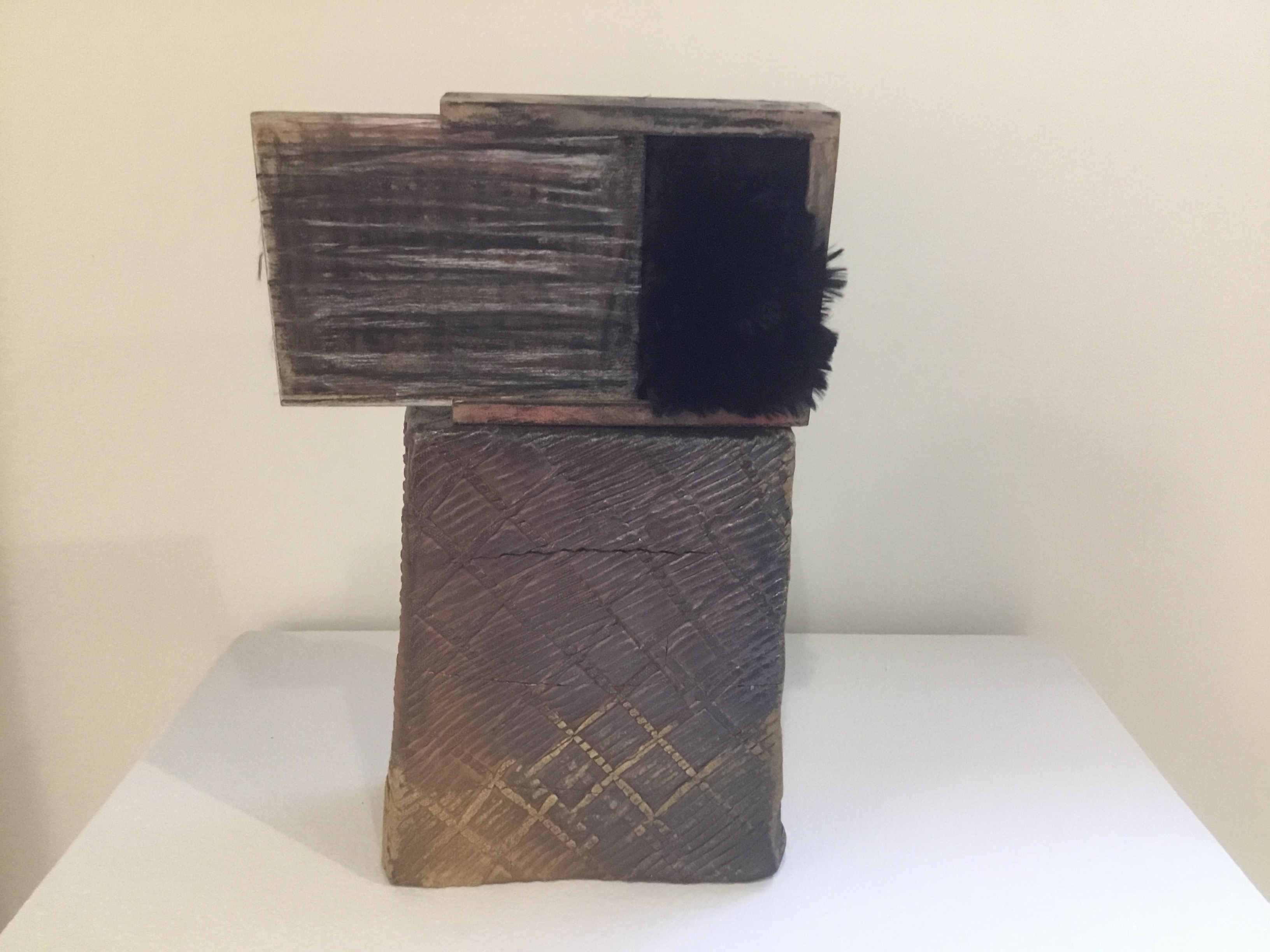 “Fissure”, wood fired stoneware, fur, 2020