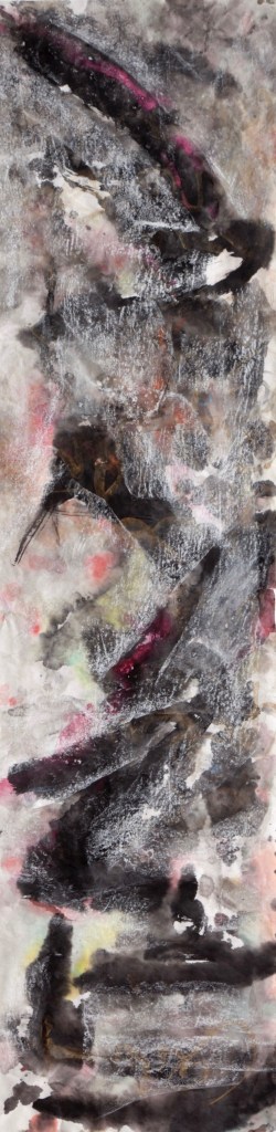 “CONTAMINATION”, sumi-e ink and pastel on paper, 18 x 72, 2018